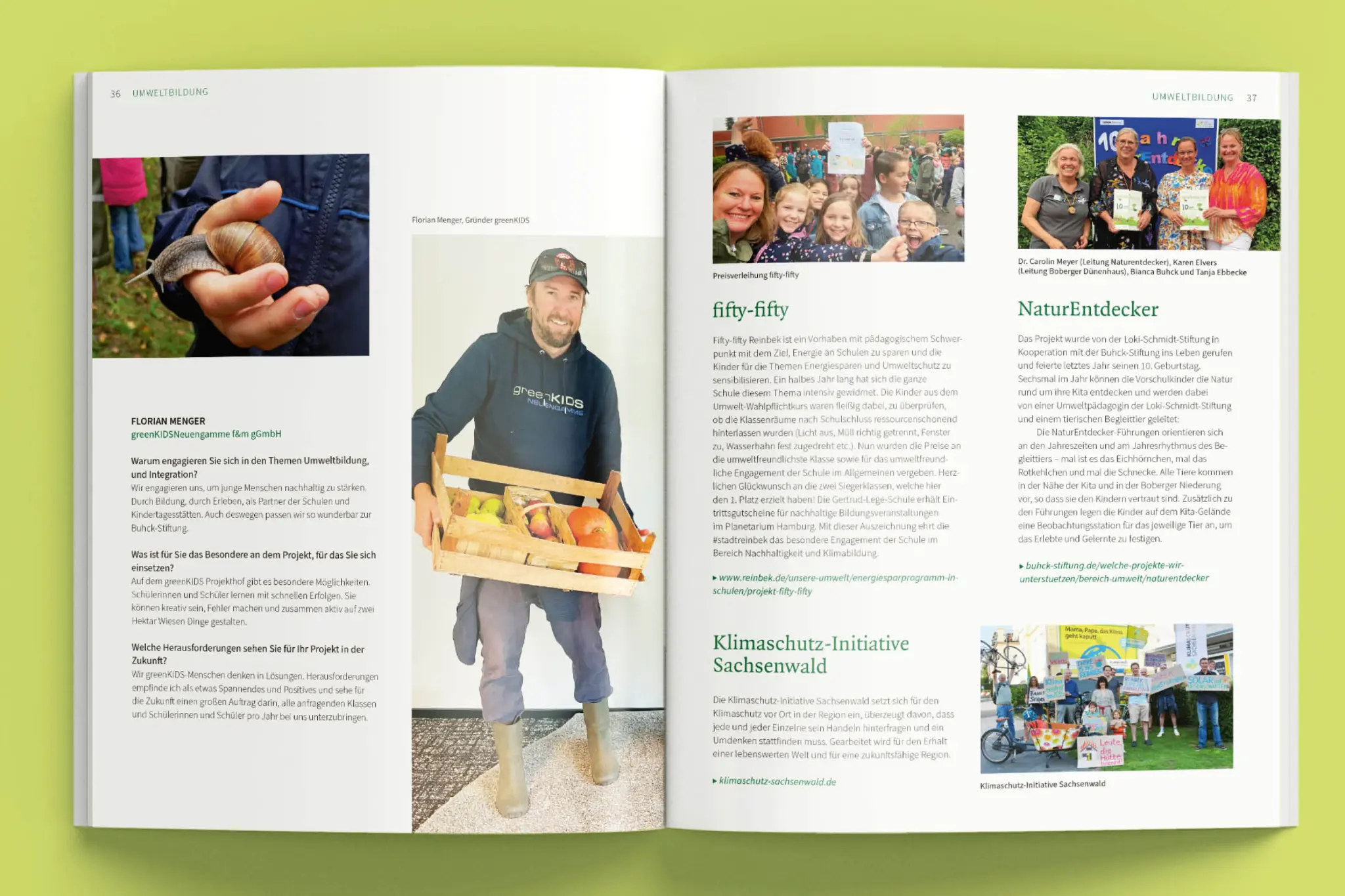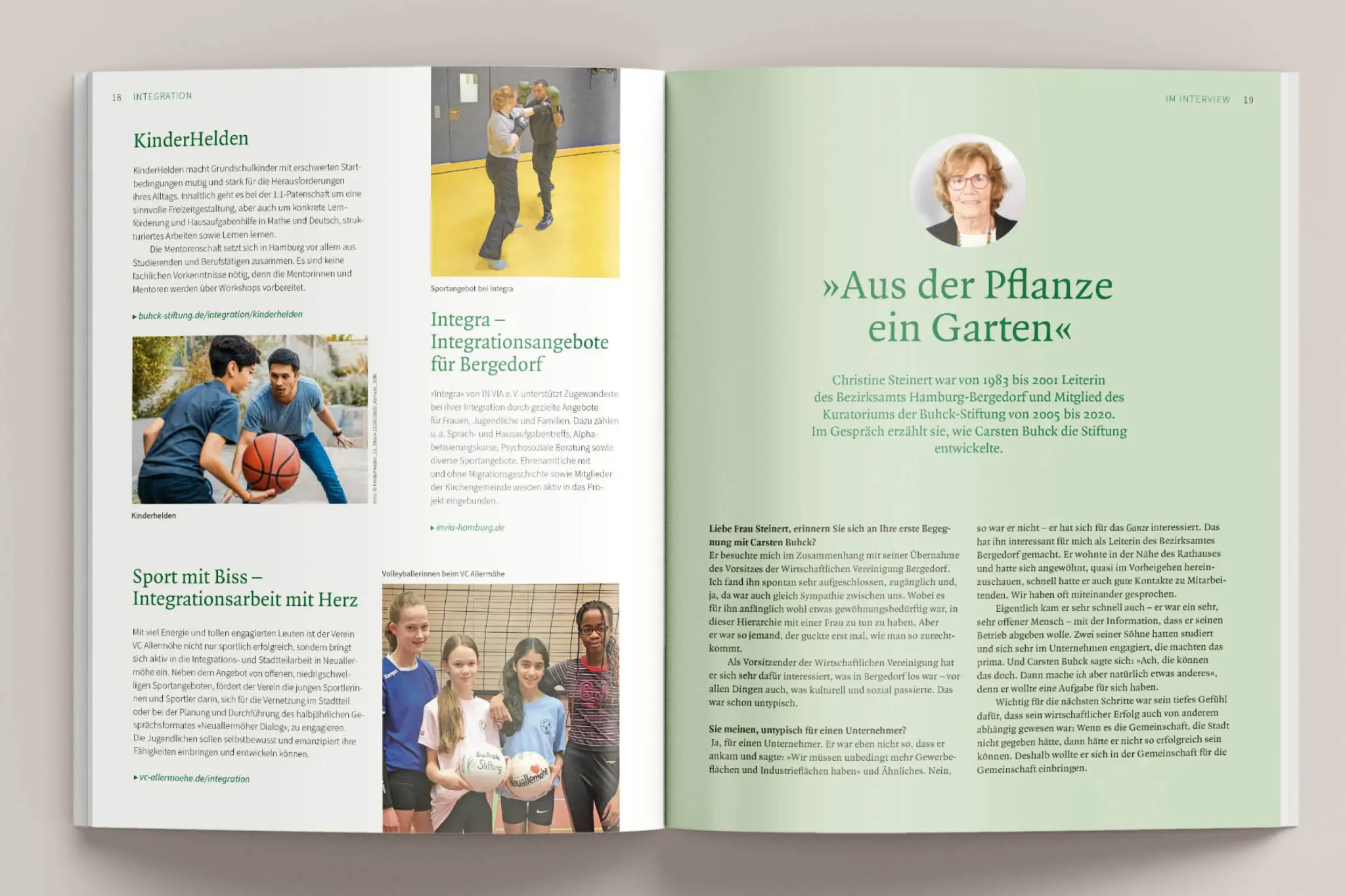 Die Stiftung gibt mit ihrer Unterstützung zahlreicher Projektpartner Kindern und Jugendlichen Denk- und Handlungsanstöße nicht nur zum verantwortlichen Umgang mit der Umwelt – auch mit Projekten, die die Integration in die Gesellschaft erleichtern, begleitet sie junge Menschen mit Migrationsgeschichte. Weiters Beeindruckendes auf der Website: buhck-stiftung.de