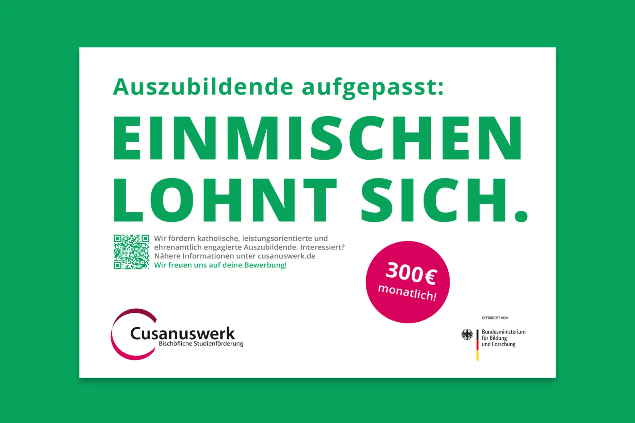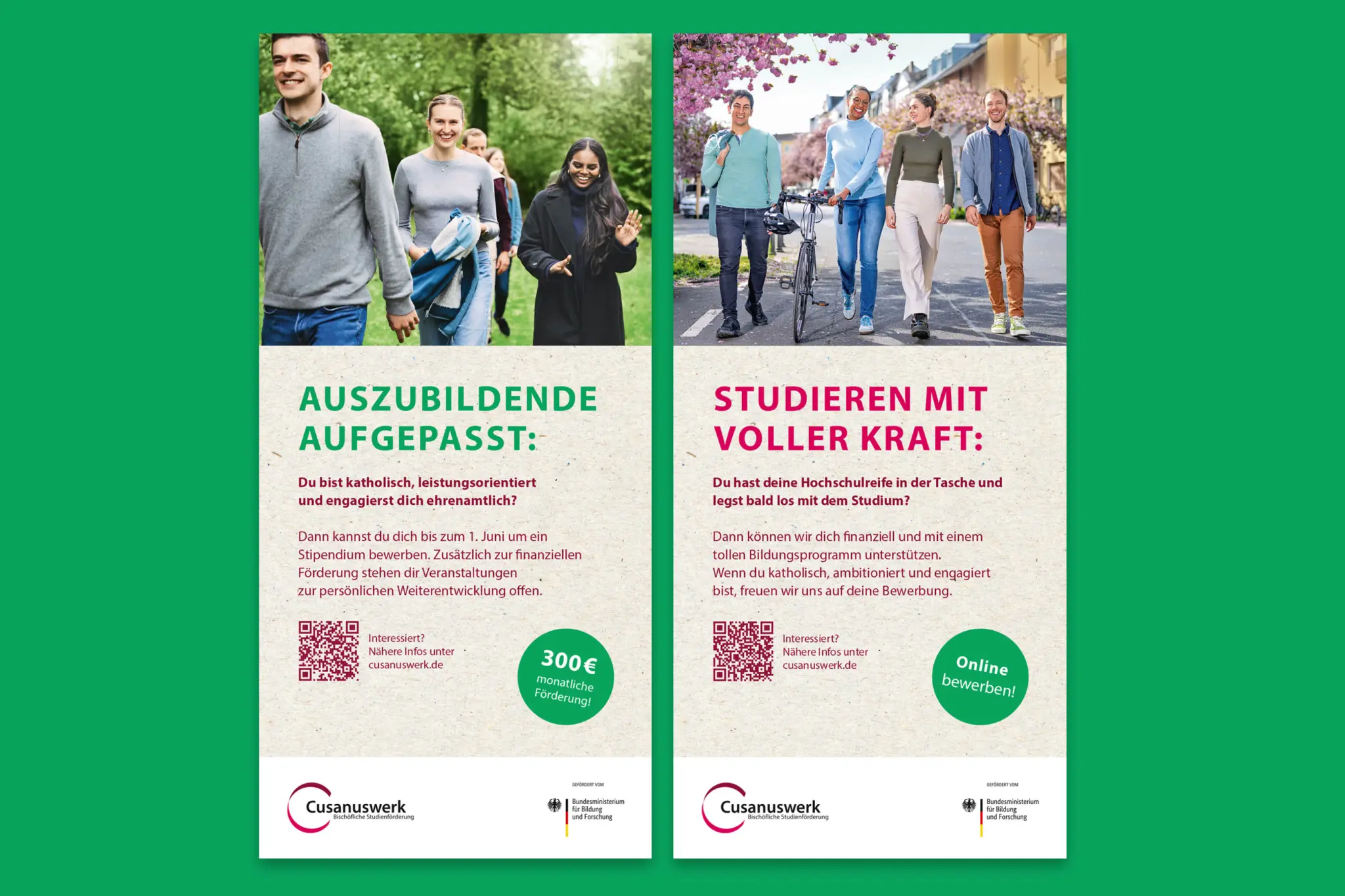 Die Bischöfliche Studienförderung Cusanuswerk ist das Begabtenförderungswerk der katholischen Kirche in Deutschland. Dafür entstehen Broschüren, Social Media Banner, Plakate, Rollups, Wendeflyer, Postkarten …