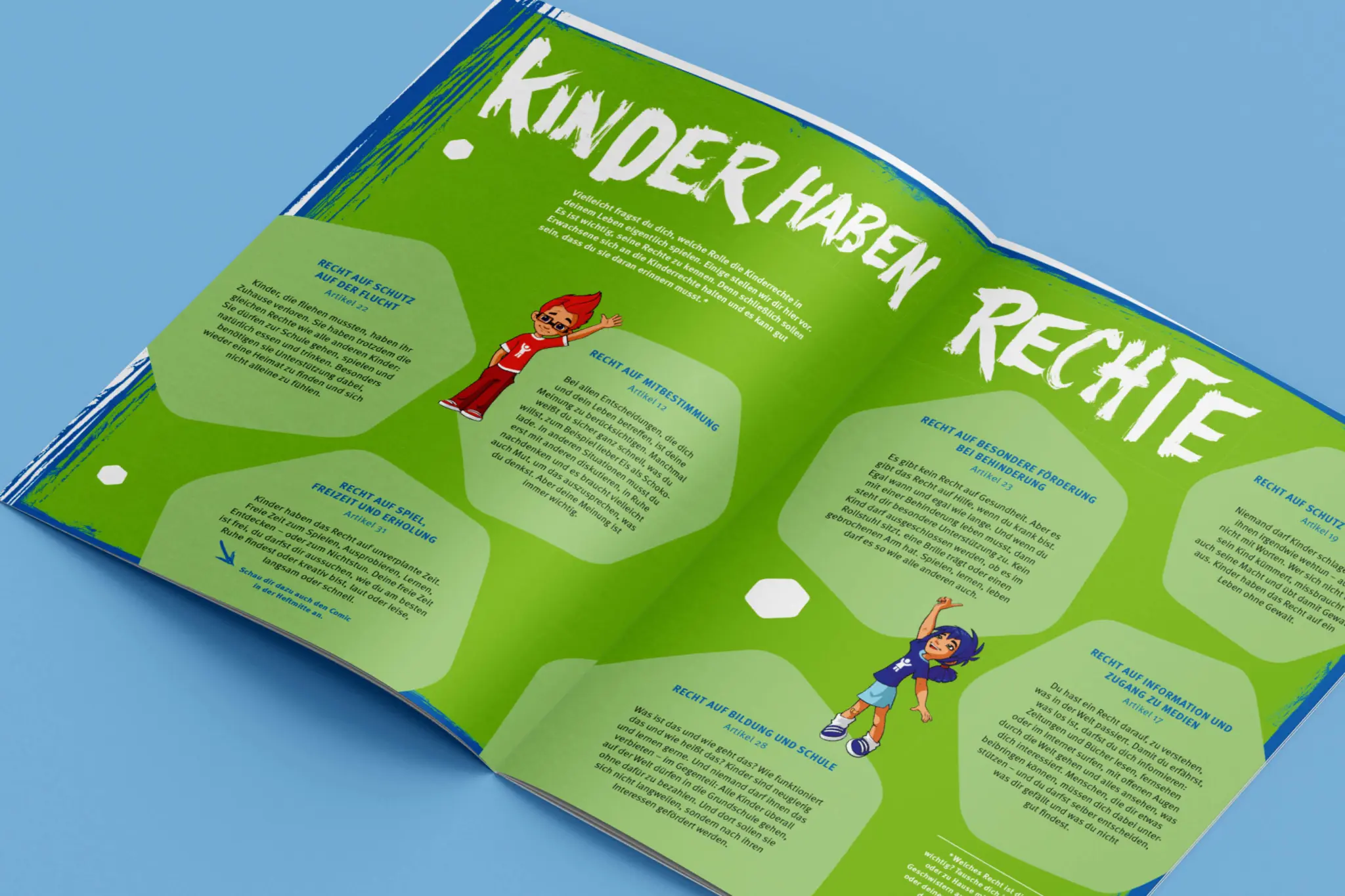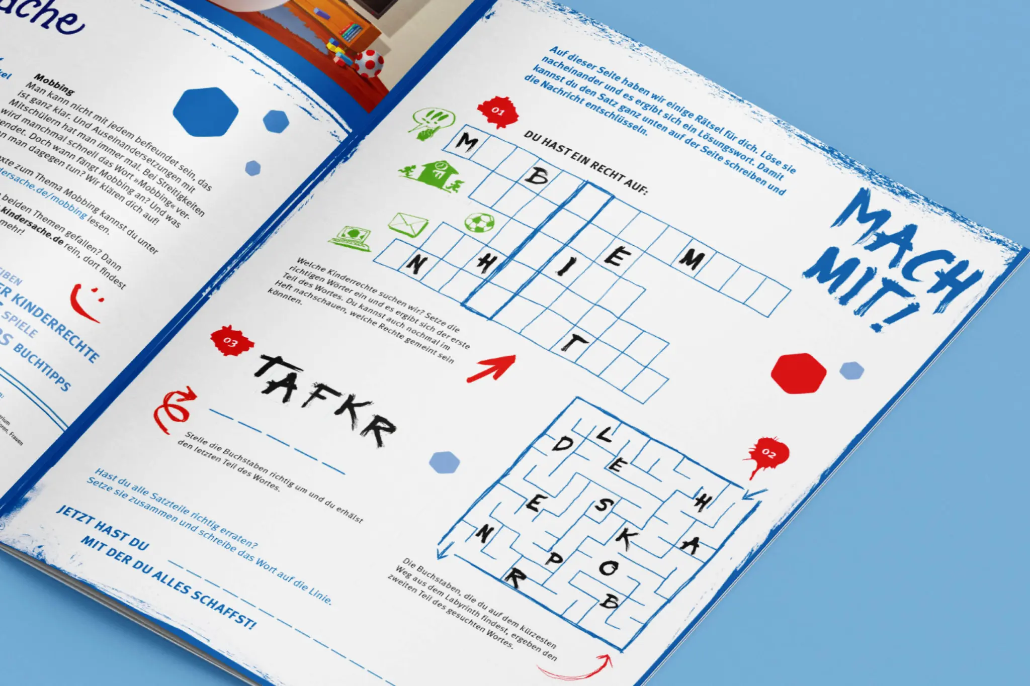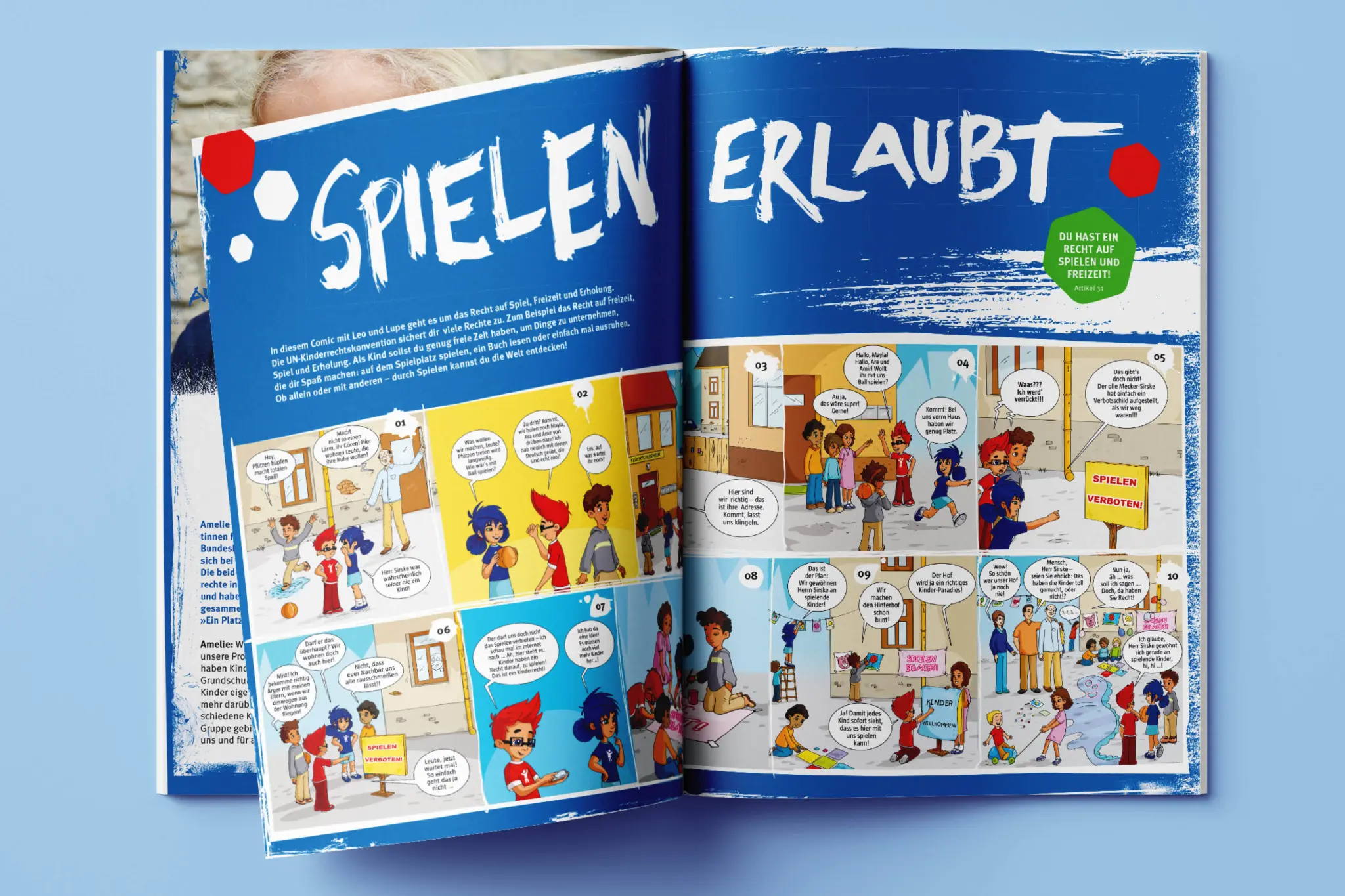 Für das Deutsche Kinderhilfswerk konzipierten und gestalteten wir ein Magazin, das Kinder spielerisch auf ihre Rechte aufmerksam und natürlich auch Spaß macht.