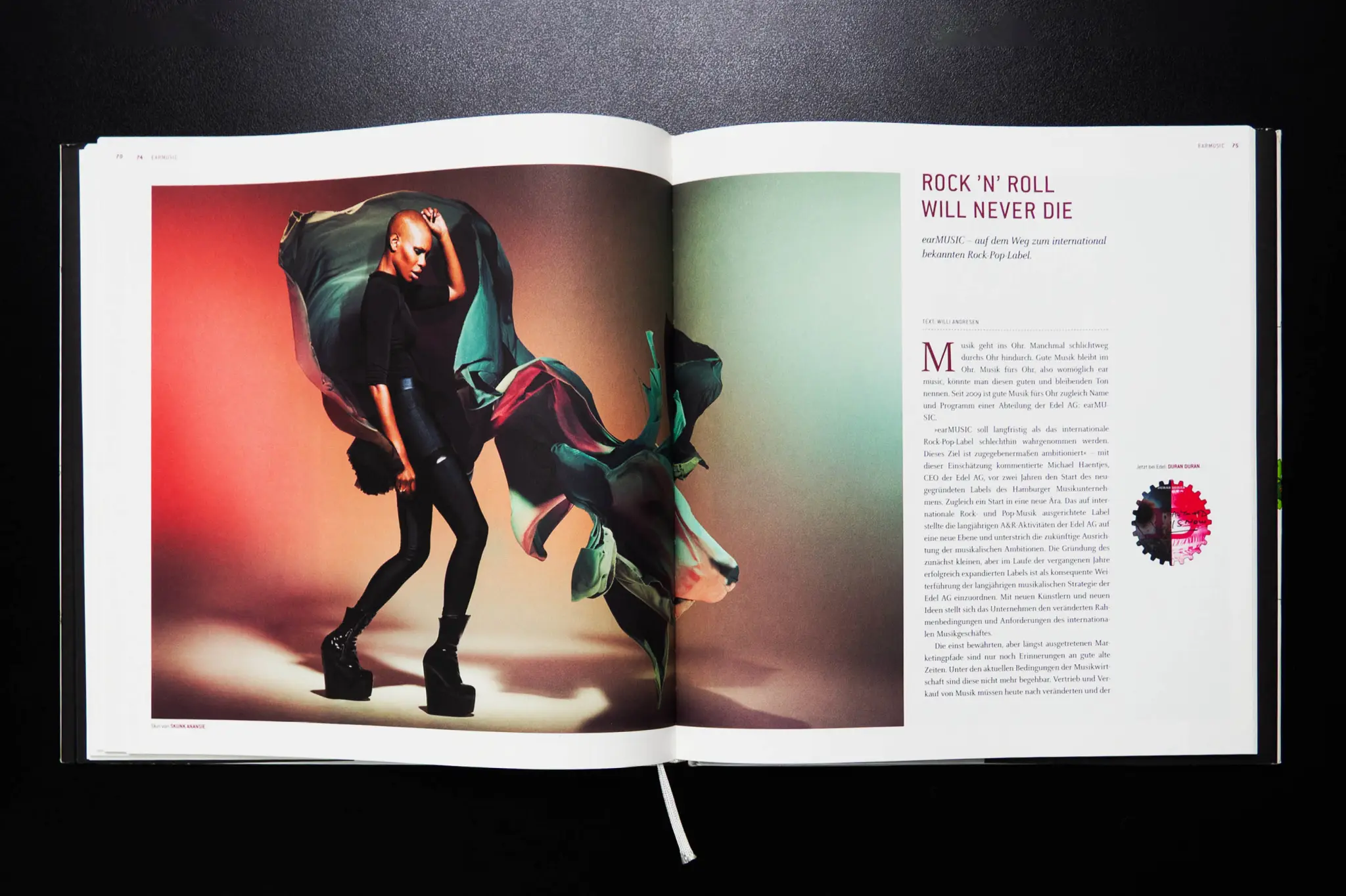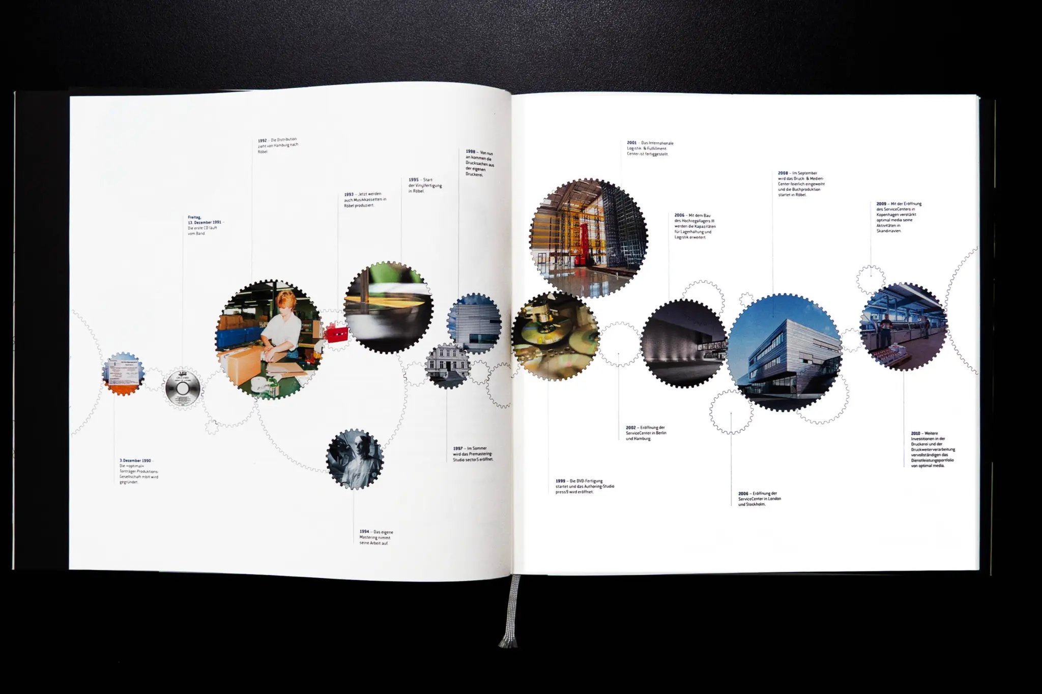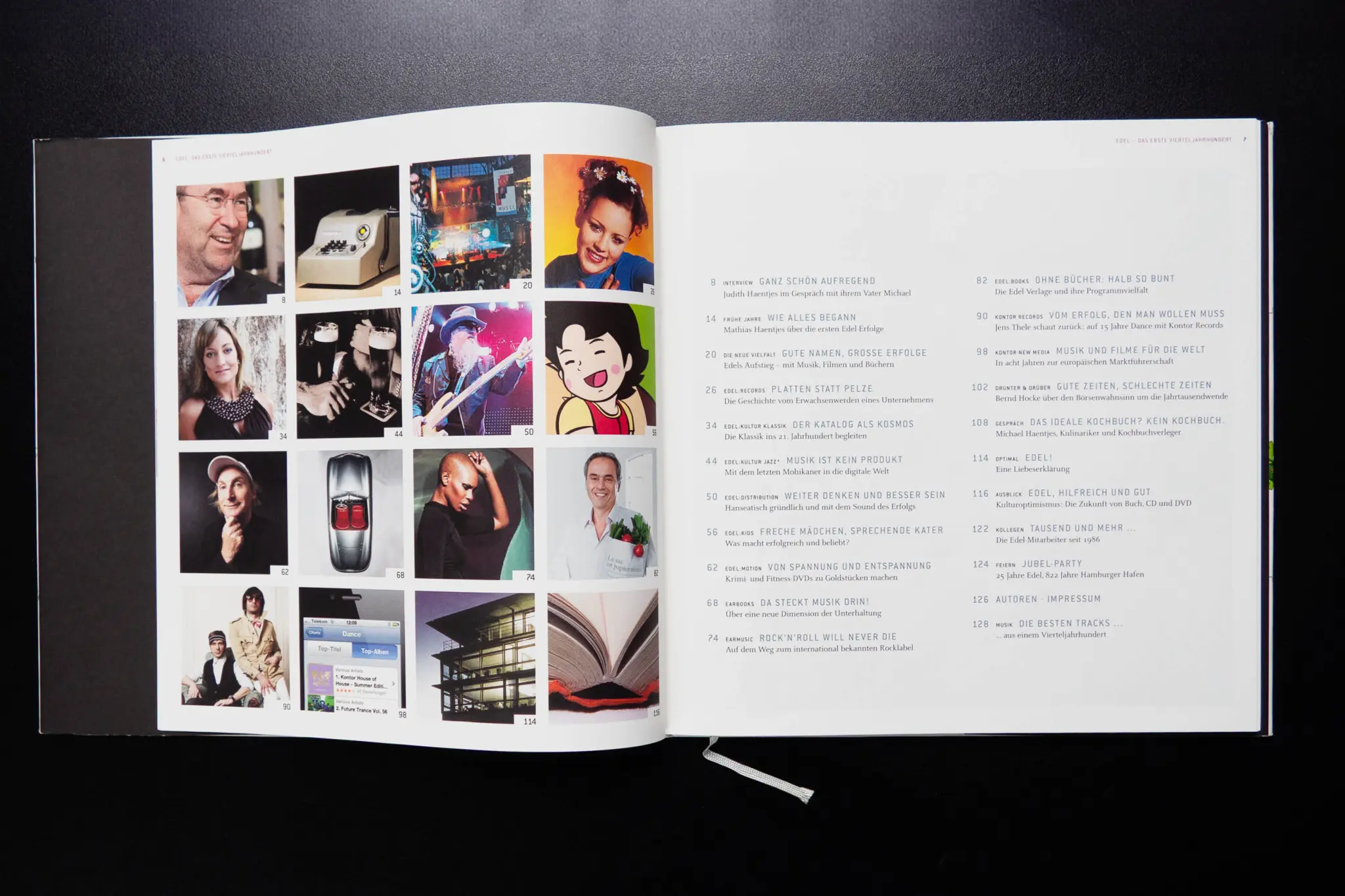 Gleich zwei Jubiläen hatte die Edel SE & Co. KGaA zu feiern: Also entstand ein Buch für den Geschäftsbereich Edel (Musik, Bücher, Entertainment) und eines für optimal (Medienproduktion, Druckerei, Distribution & Logistik), zusammengetan in einem Schuber. Den Red Dot Design Award gab’s obendaruf.