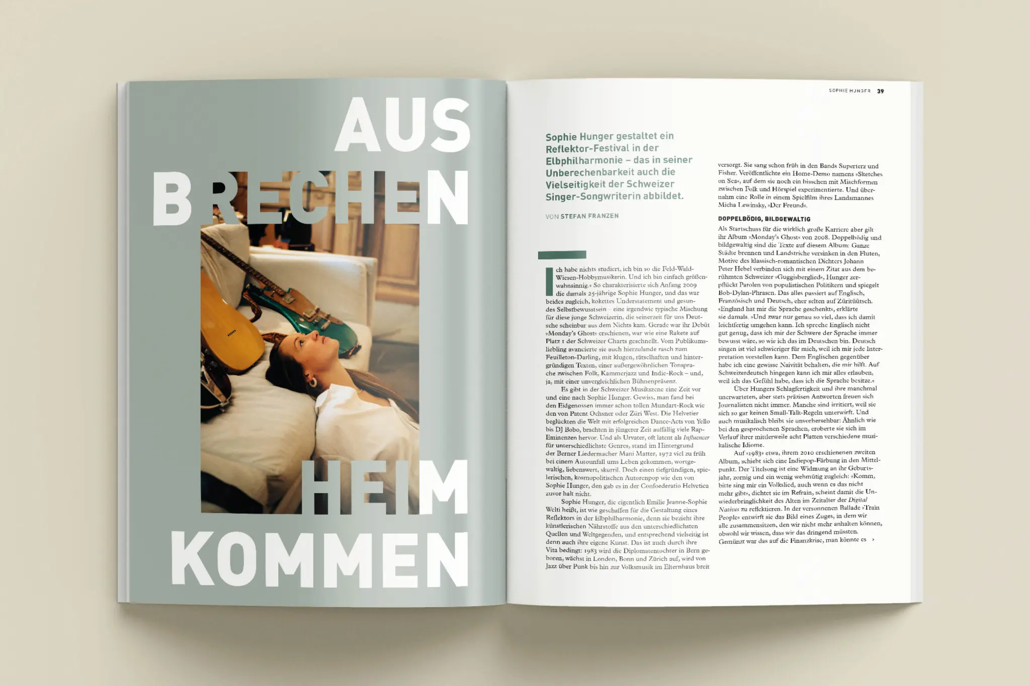 seit Eröffnung des Hamburger Wahrzeichens gibt das Magazin Einblicke in die aktuelle Saison: Interviews und Portraits der KünstlerInnen, Essays, Reportagen, und immer auch eine besondere Fotostrecke sprechen die Sprache des Konzerthauses und seines Programms.