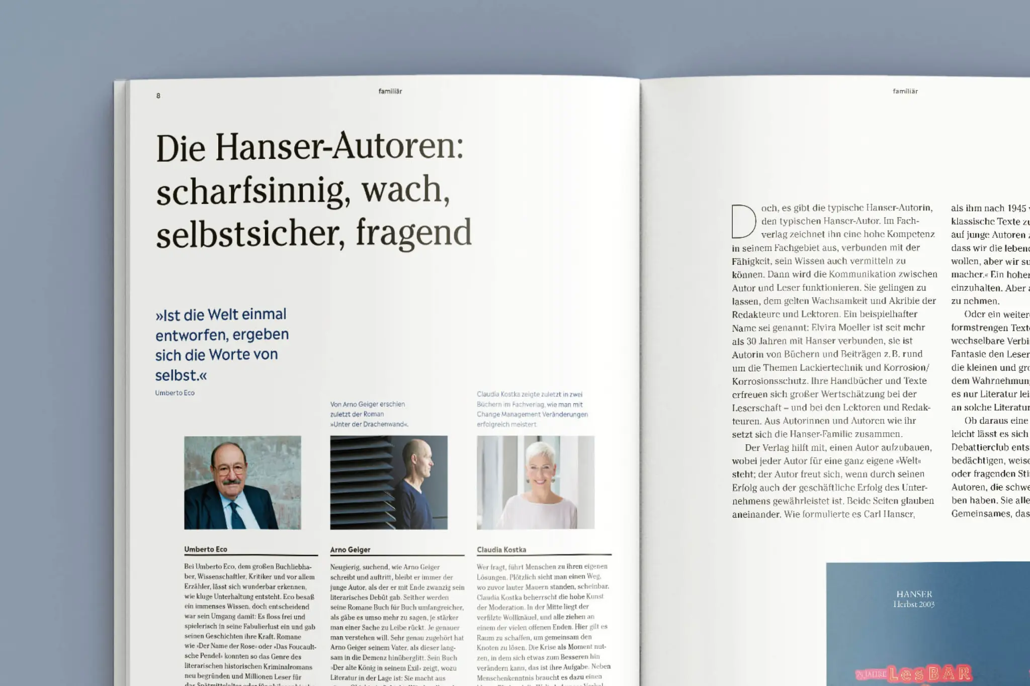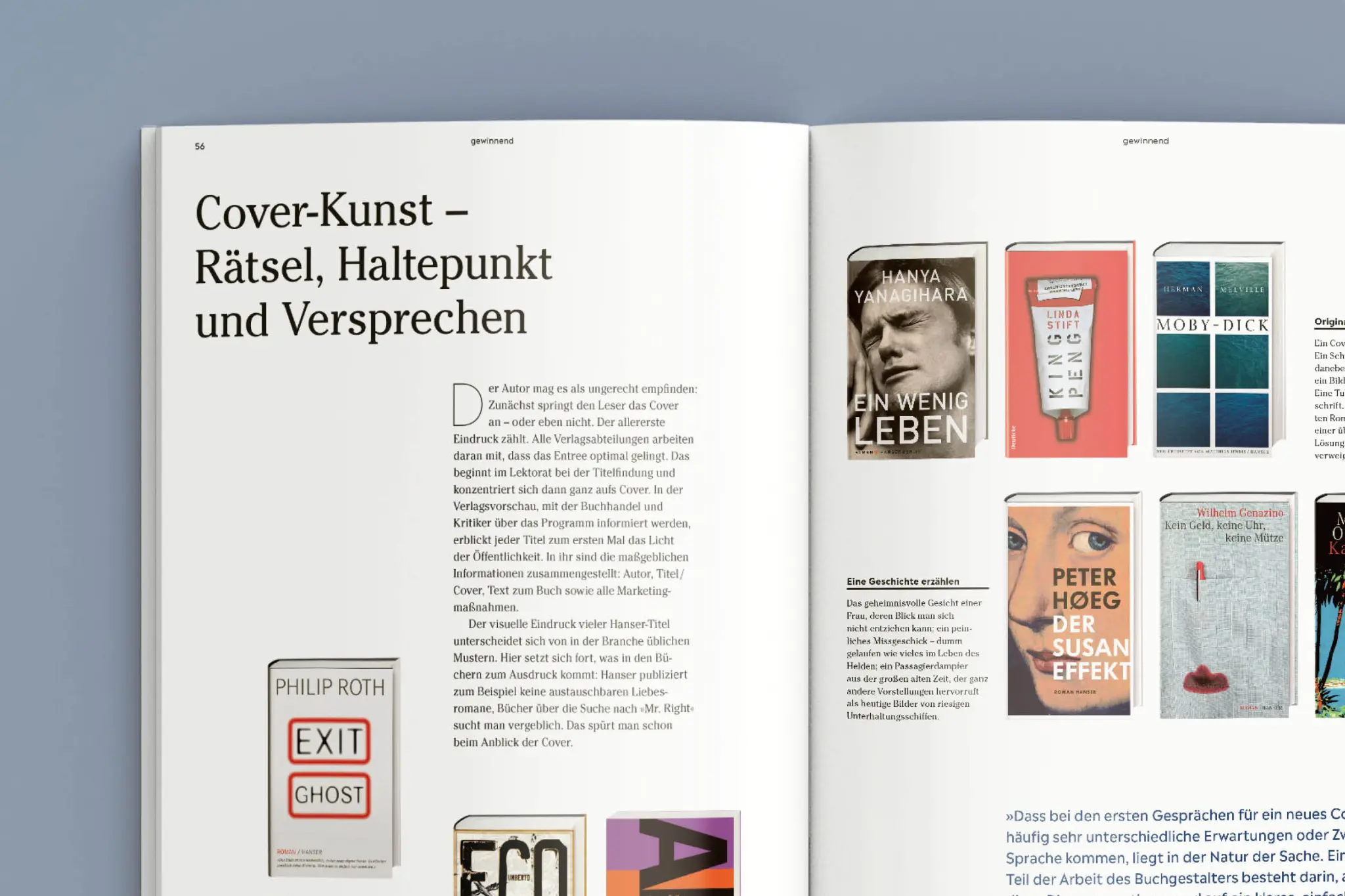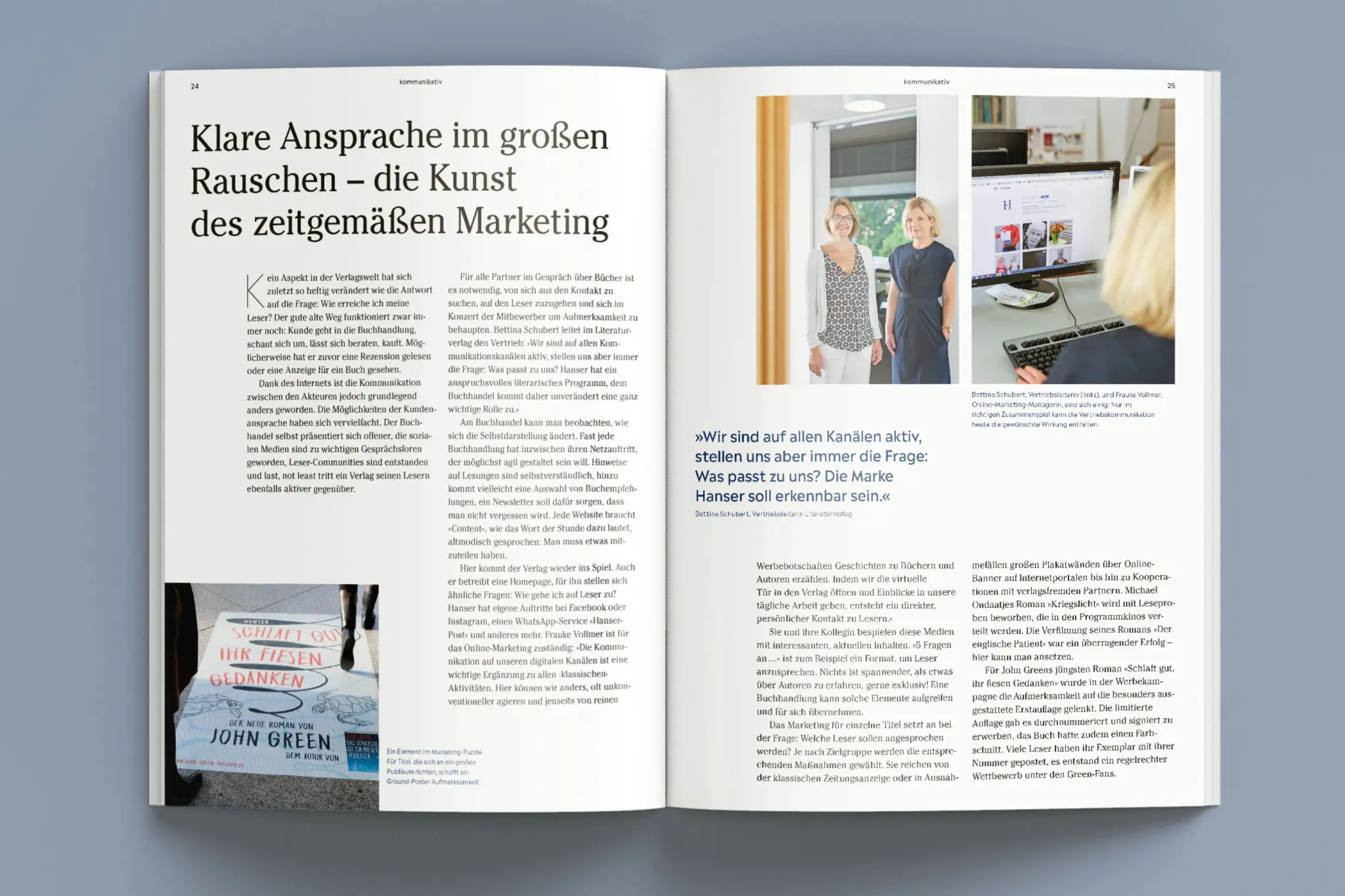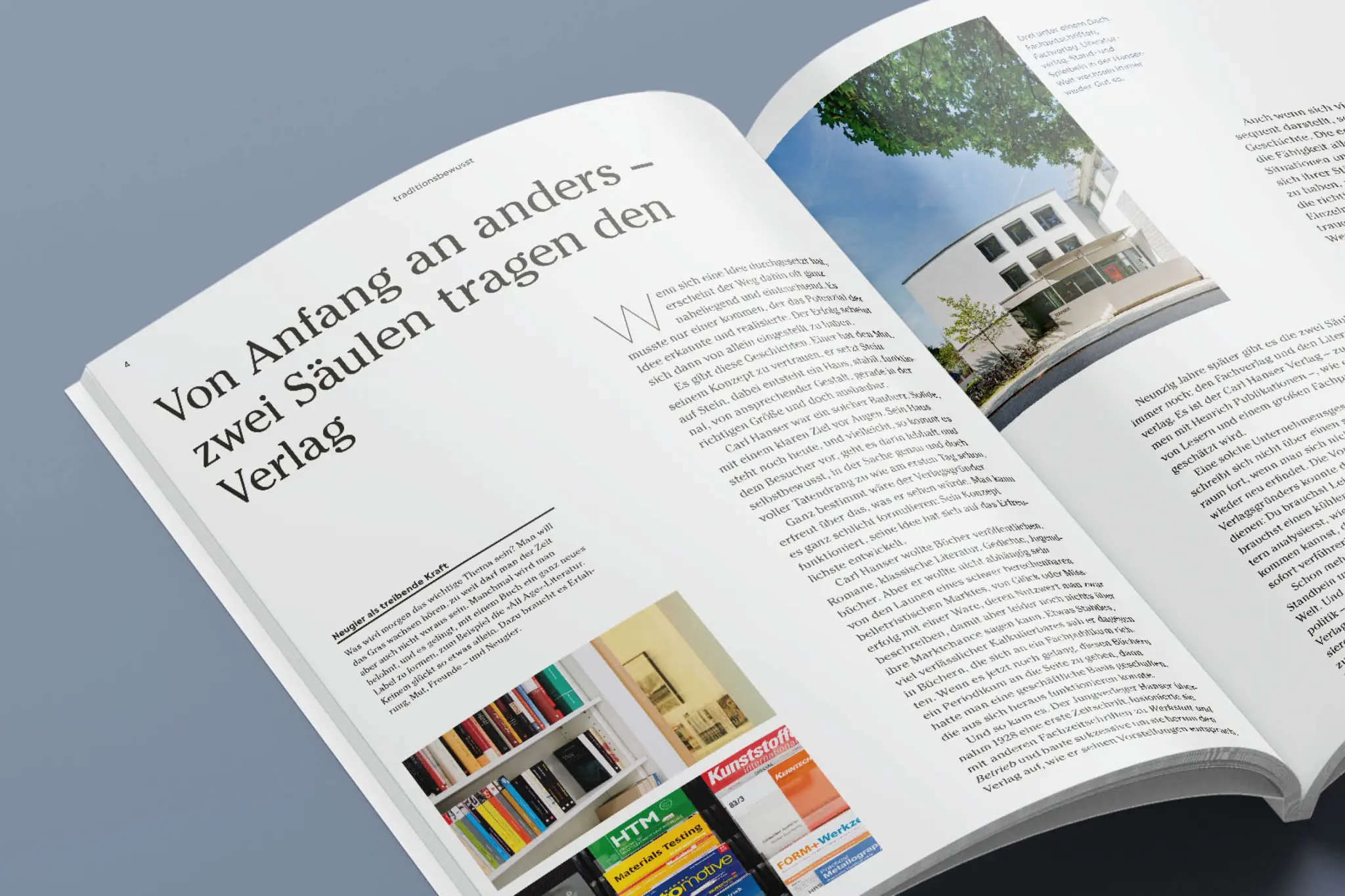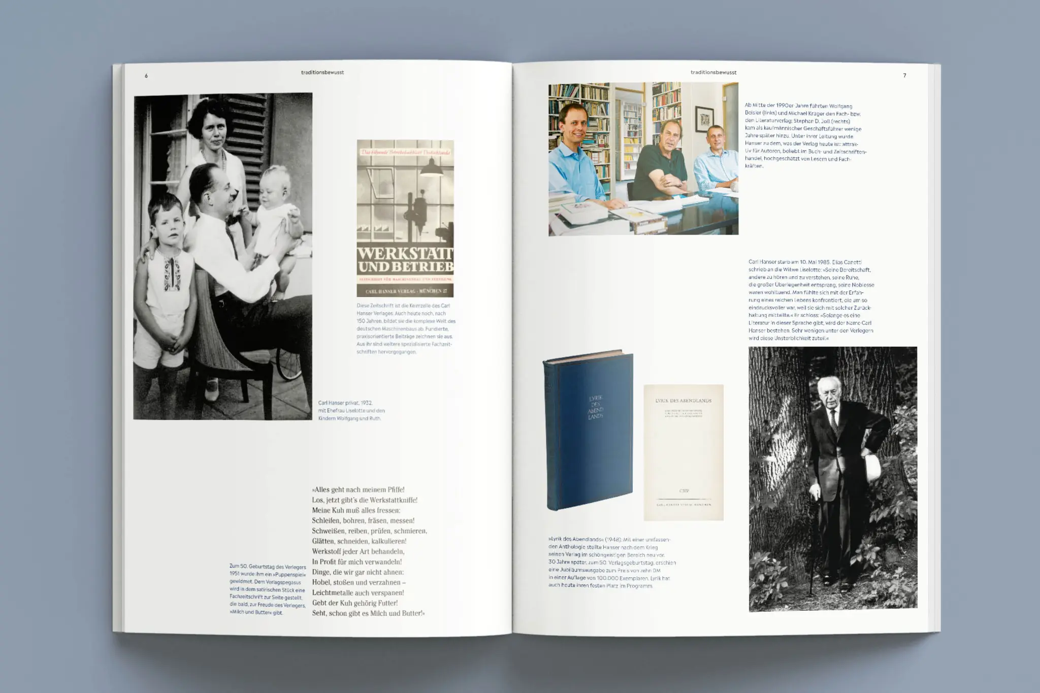 ist der Carl Hanser Verlag – auch ein Verlag lebt von Menschen. Von den AutorInnen und ihren Themen, von den Mitarbeitenden, die daraus Bücher und Beiträge machen. Es geht um das, was Menschen erfinden, was sie antreibt, was sie sich beruflich aufbauen. Und es geht um Erzählungen über das Leben. Wie die Menschen der Hanser-Verlage ihr Haus geformt haben, ist eine besondere Geschichte, die wir von Idee und Konzept bis hin zum gedruckten Magazin begleitet haben.