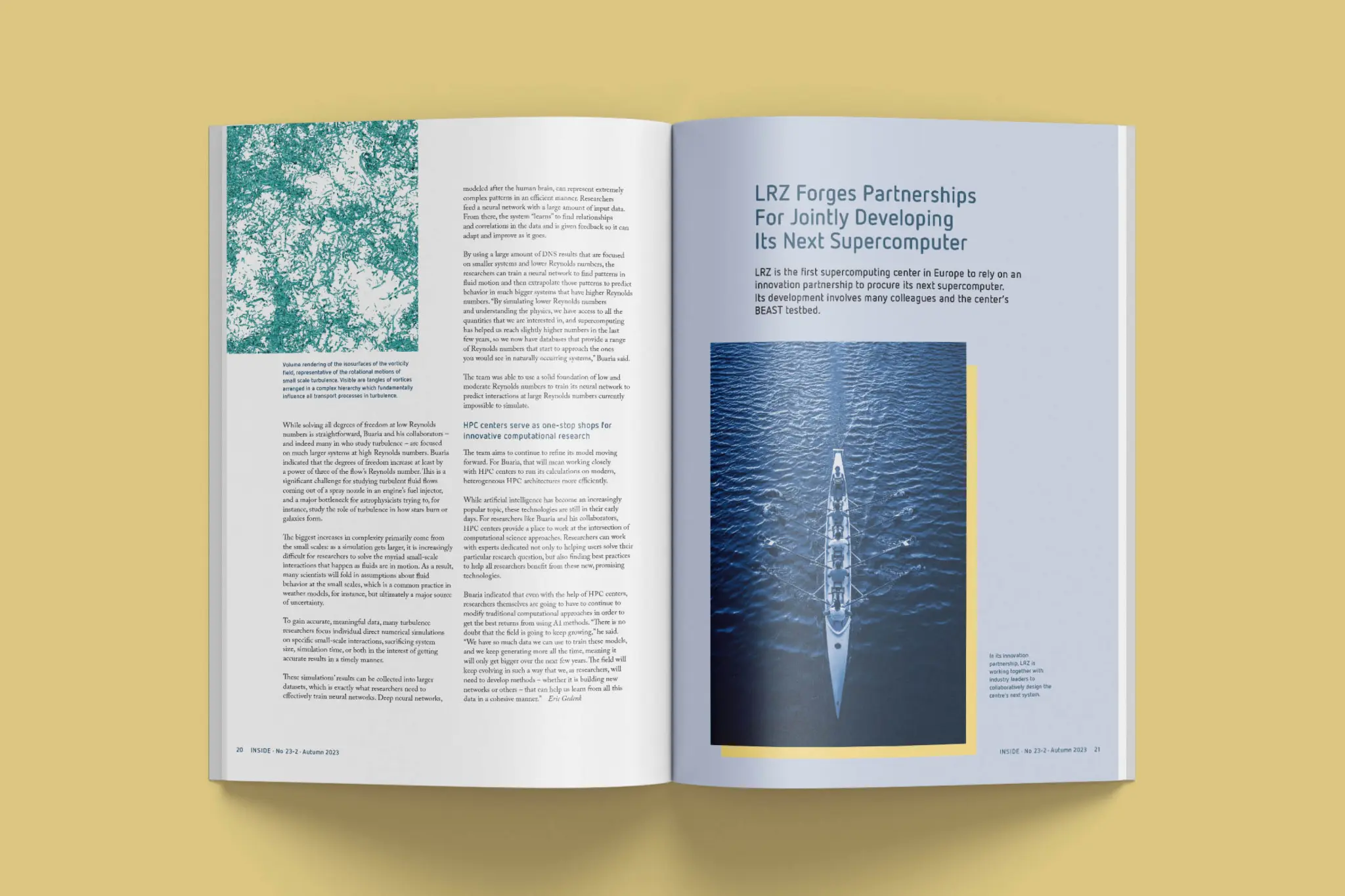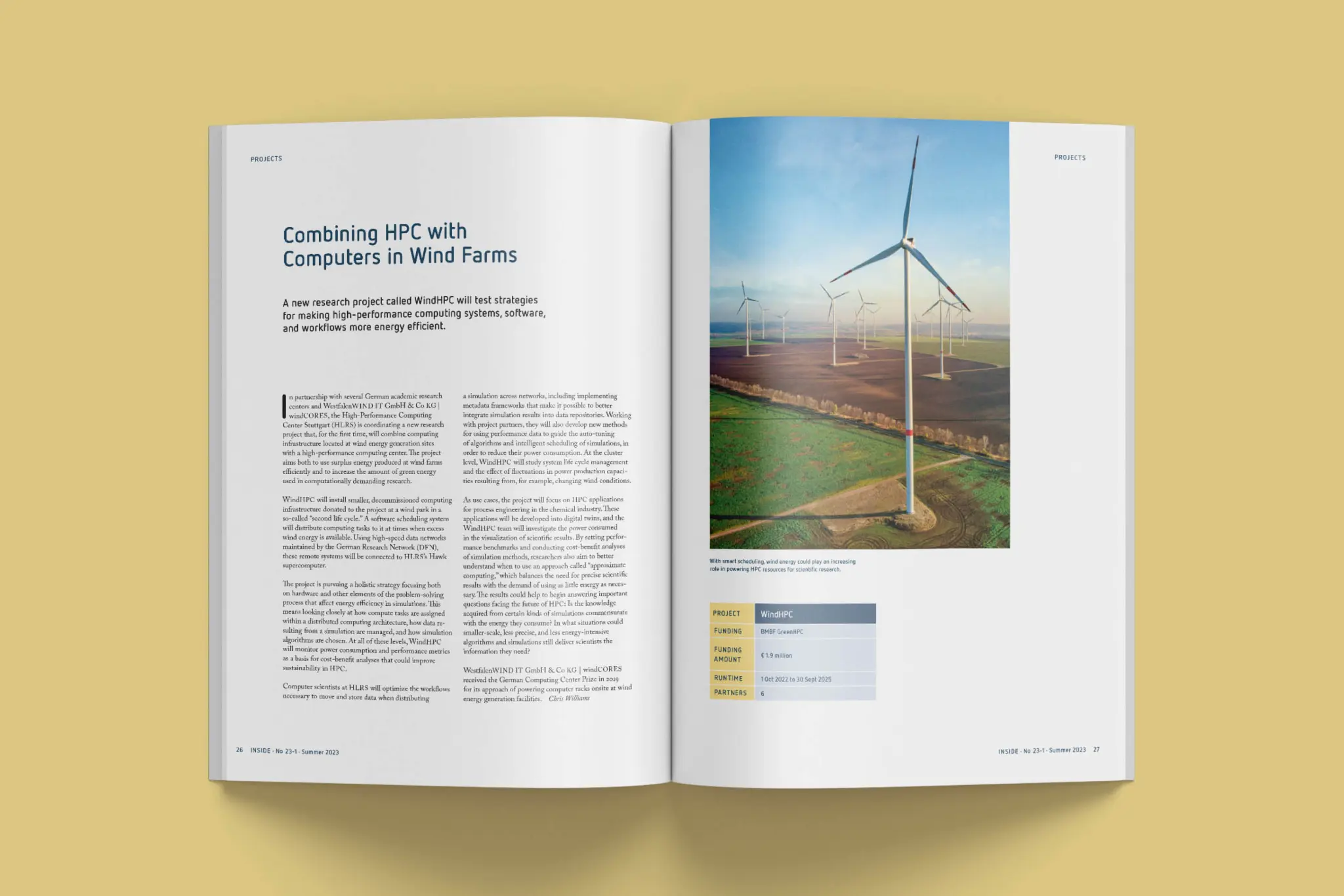 HLRS stellt Nutzern aus Wissenschaft und Industrie Rechenkapazitäten zur Verfügung. Im halbjährlich erscheinenden InSiDE-Magazin werden Ergebnisse, Entwicklungen und wissenschaftlichen Erfolge vorgestellt. Auch gestalten wir den Jahres- und den Umweltbericht, Messestände, Broschüren und verschiedene Werbemittel.