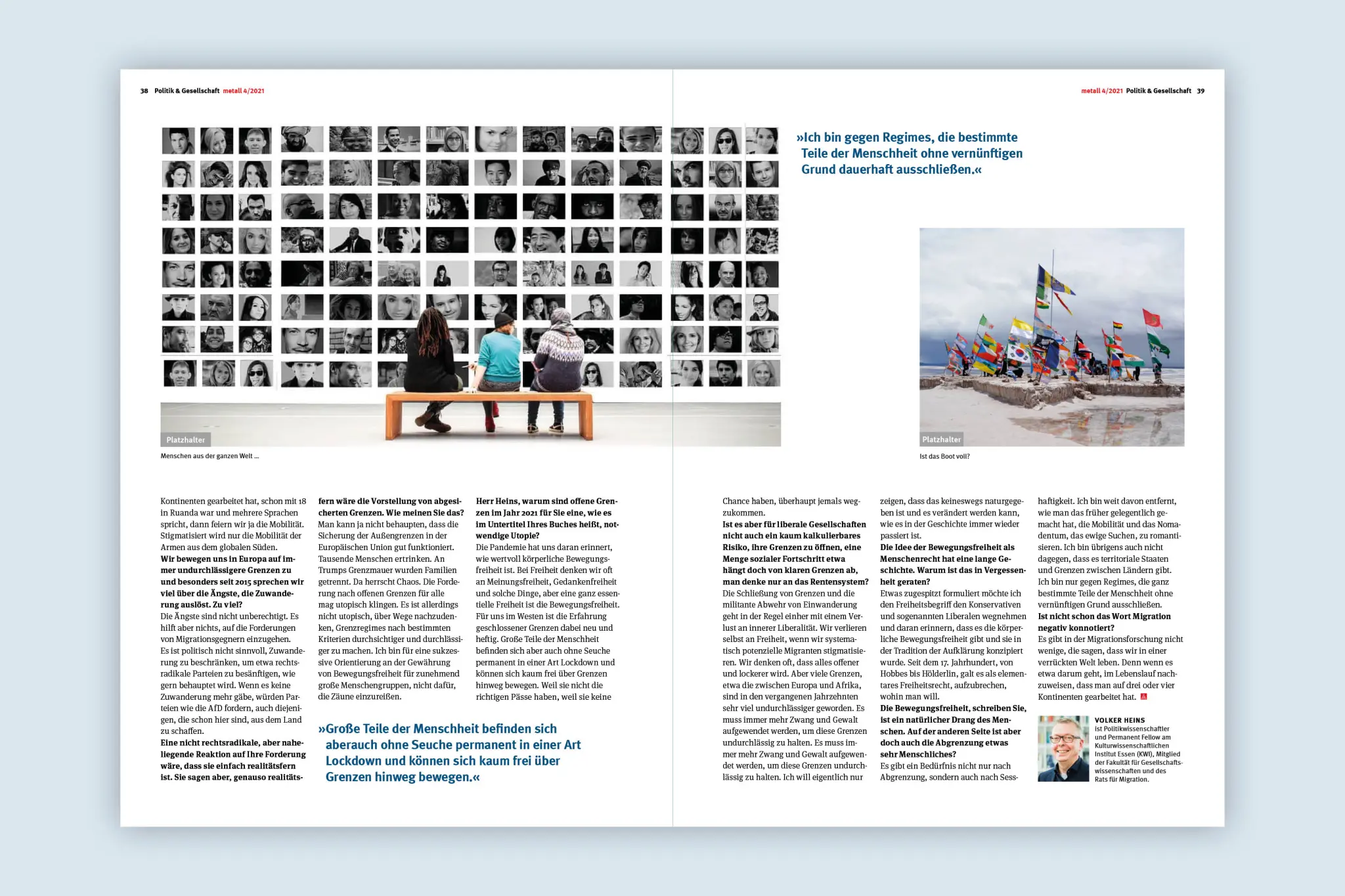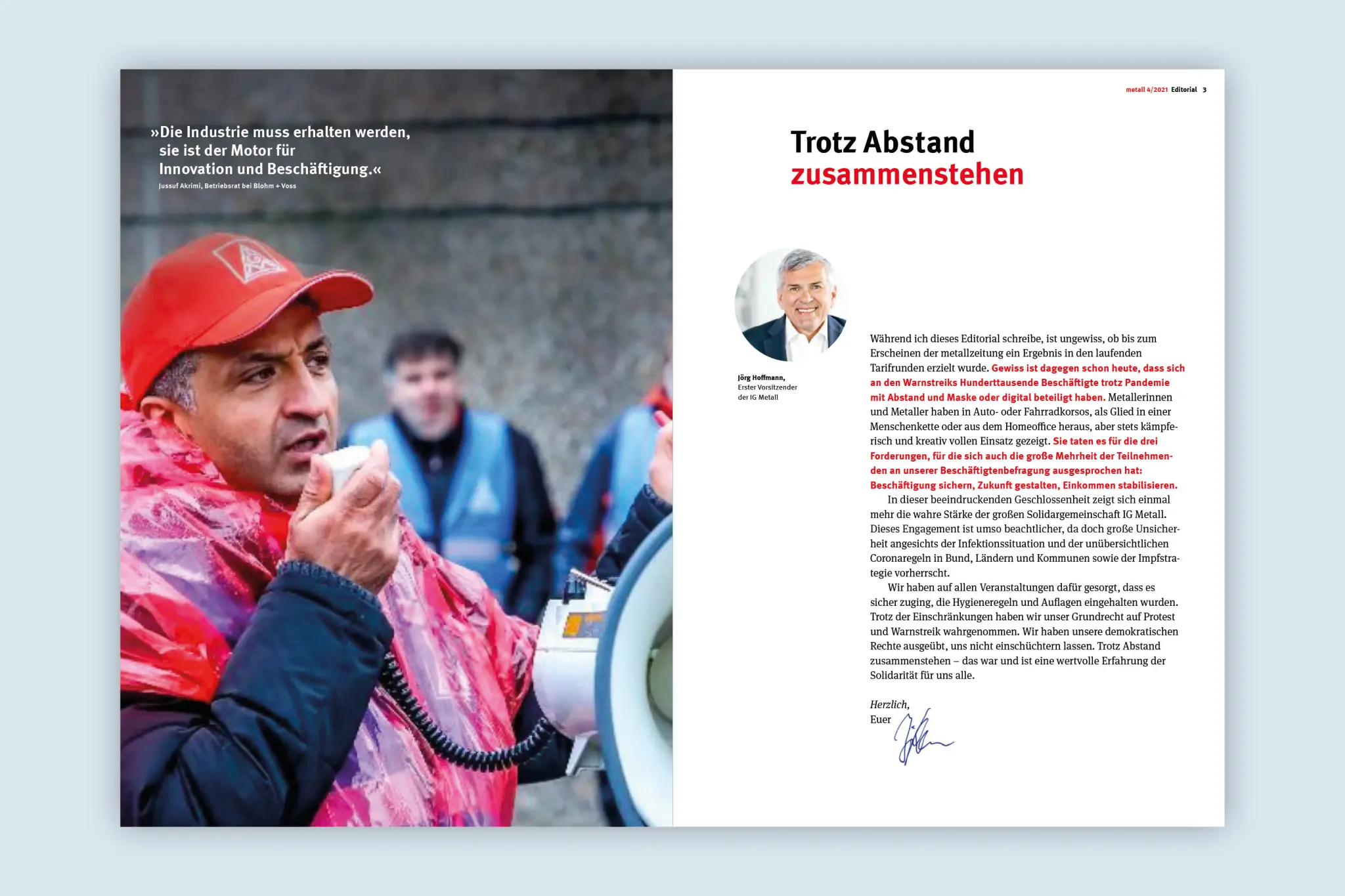Das Mitgliedermagazin der IG Metall erscheint sechsmal im Jahr – das Gestaltungskonzept kommt von uns.