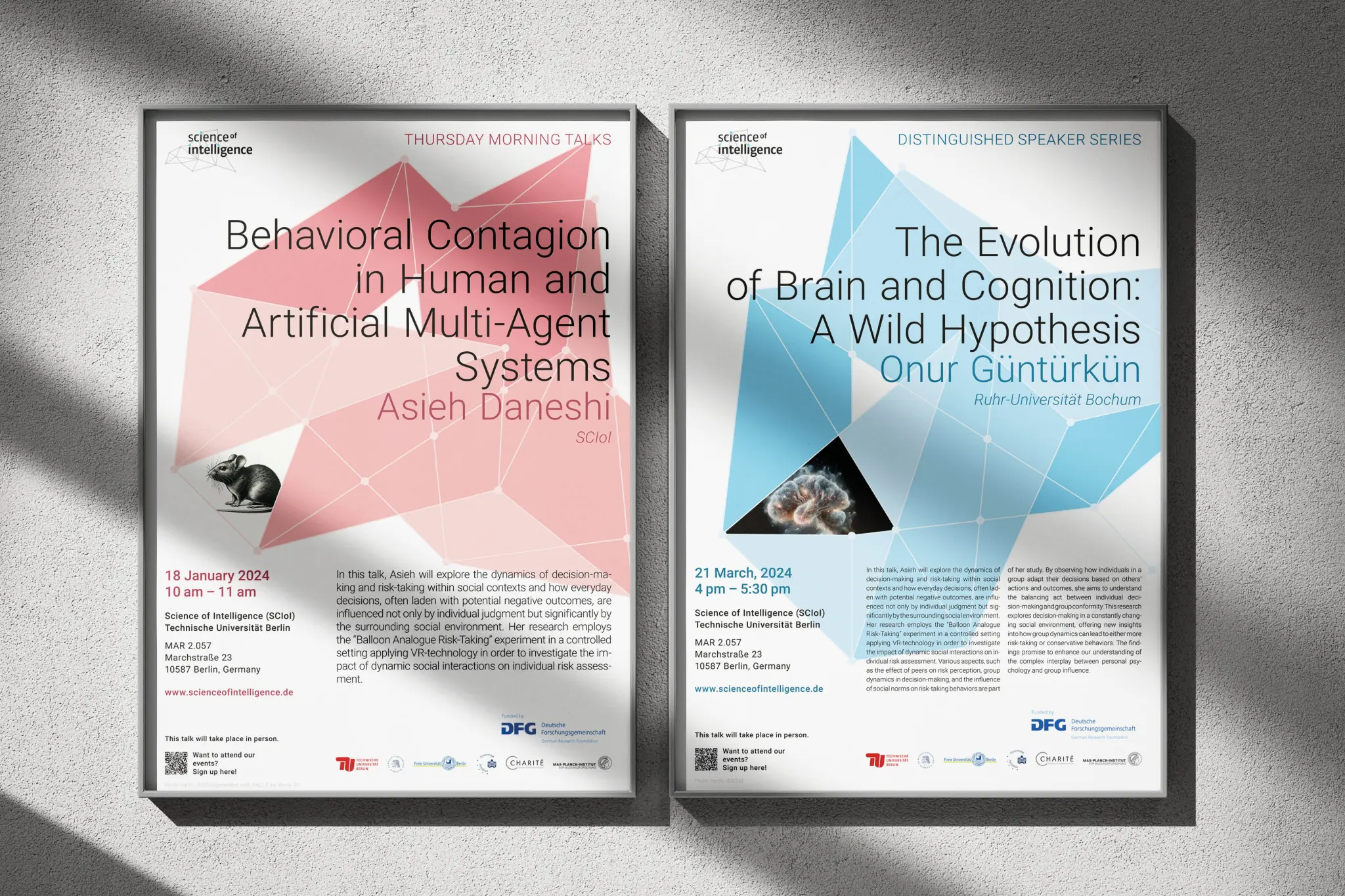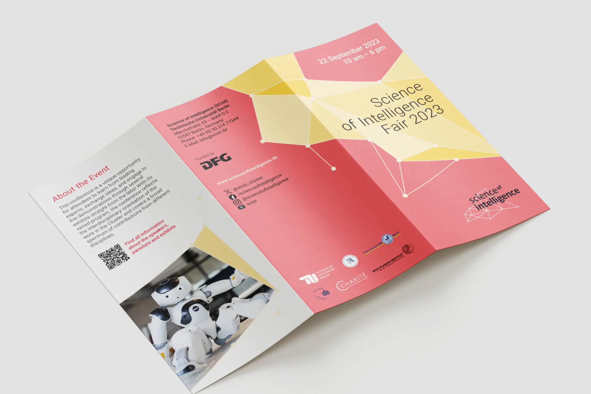 Science of Intelligence ist ein institutübergreifendes Forschungsprojekt der TU Berlin, das hilft, Intelligenz zu verstehen und intelligente Technologien zu entwickeln. Ob künstlich oder biologisch, Roboter, Computerprogramm, Mensch oder Tier – die Stationen und Ergebnisse präsentiert SCIoI mit Hilfe unseres Corporate Designs.