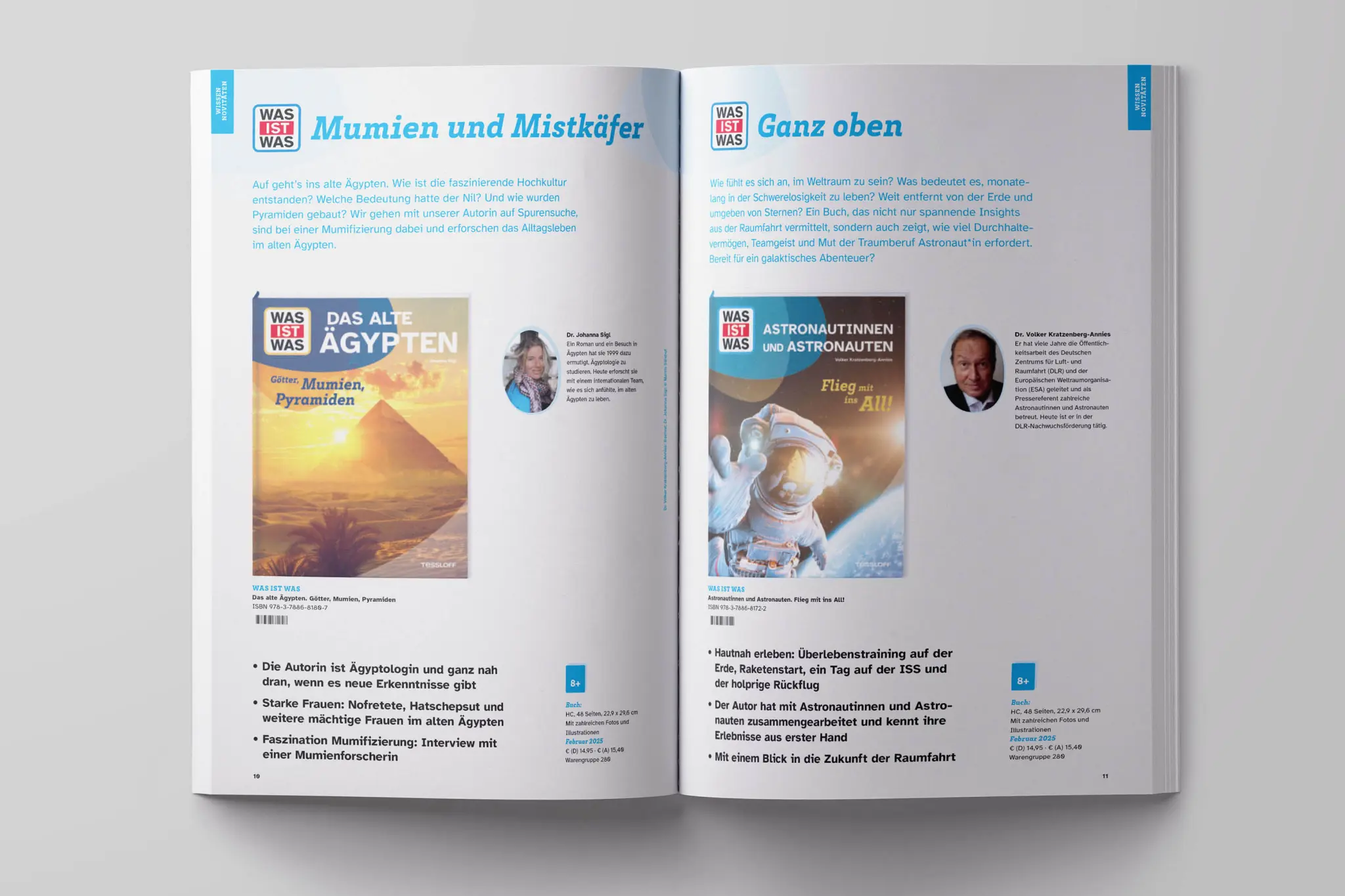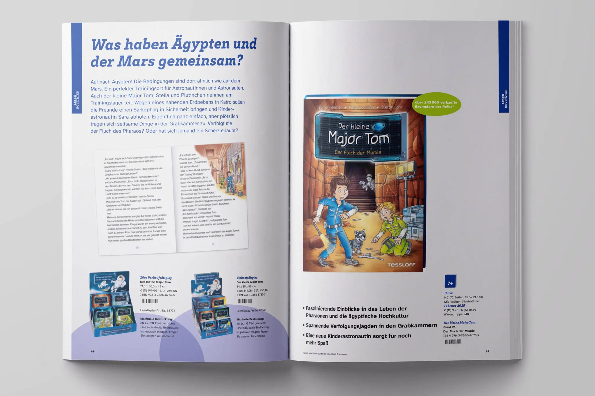 Tessloff ist einer der großen Kinderbuchverlage im deutschsprachigen Raum. Wir haben das Gestaltungskonzept der umfangreichen Vorschau neu gestaltet.