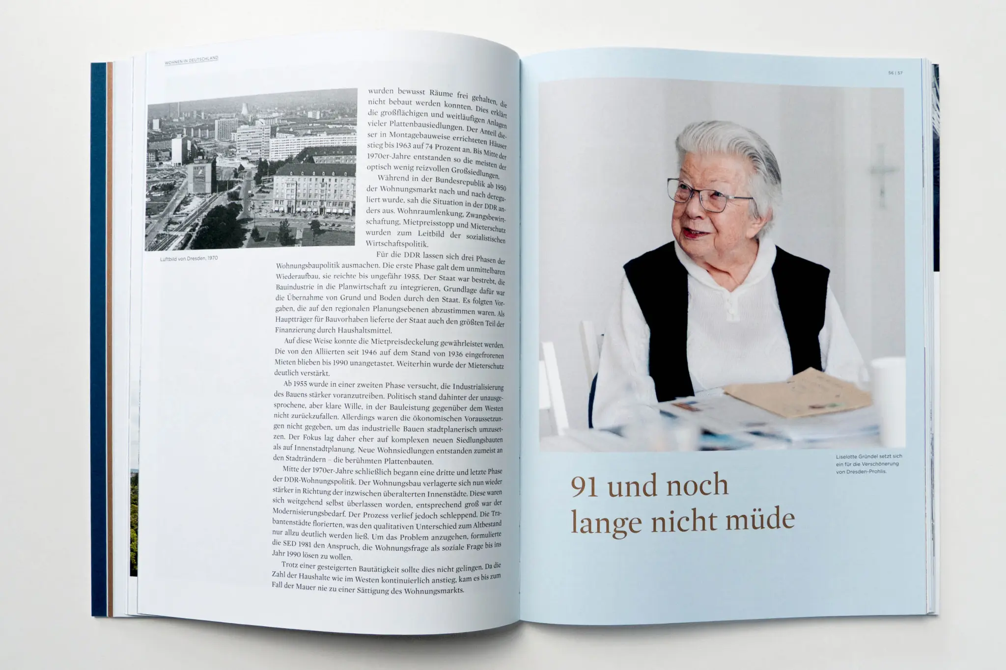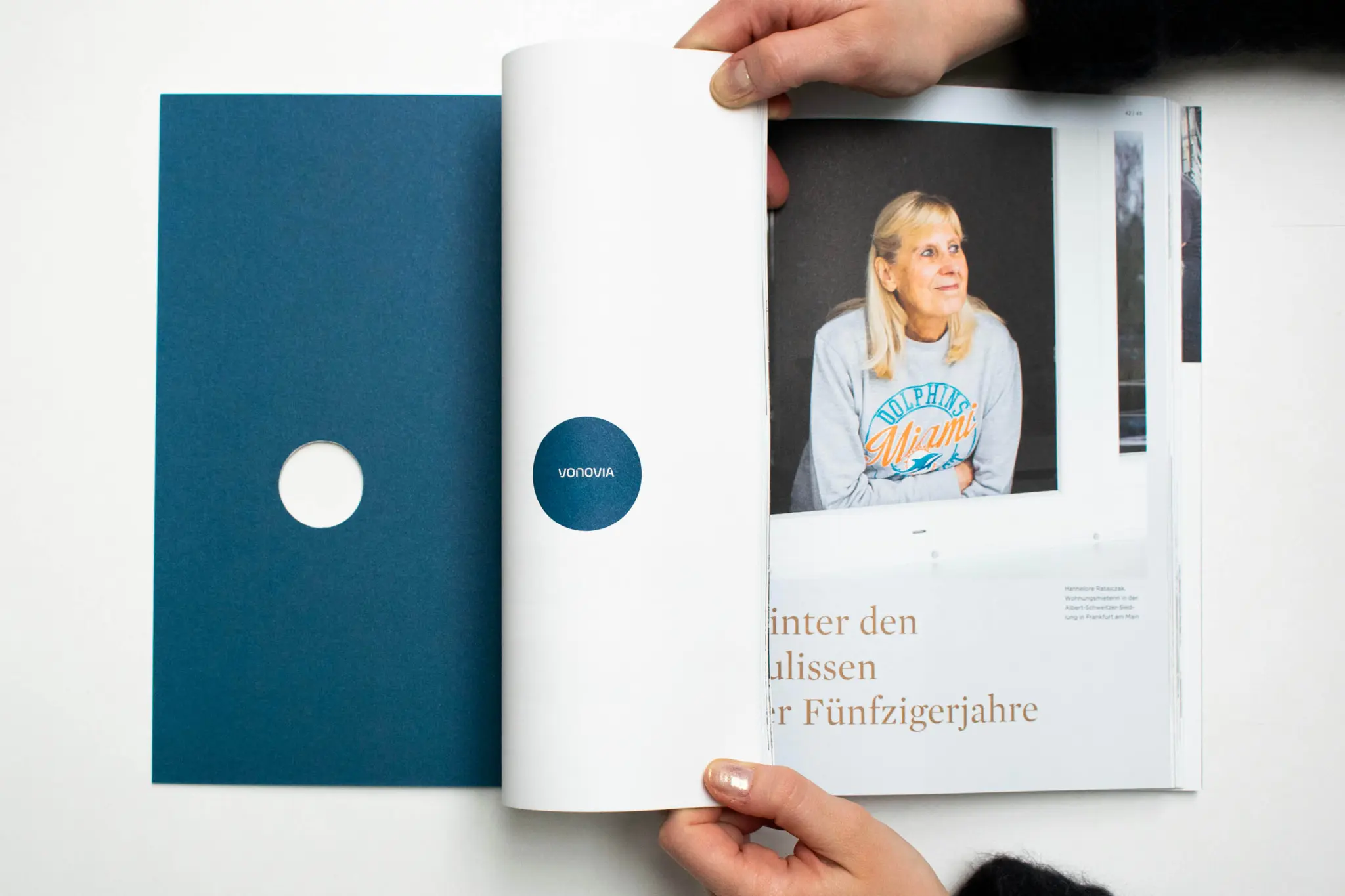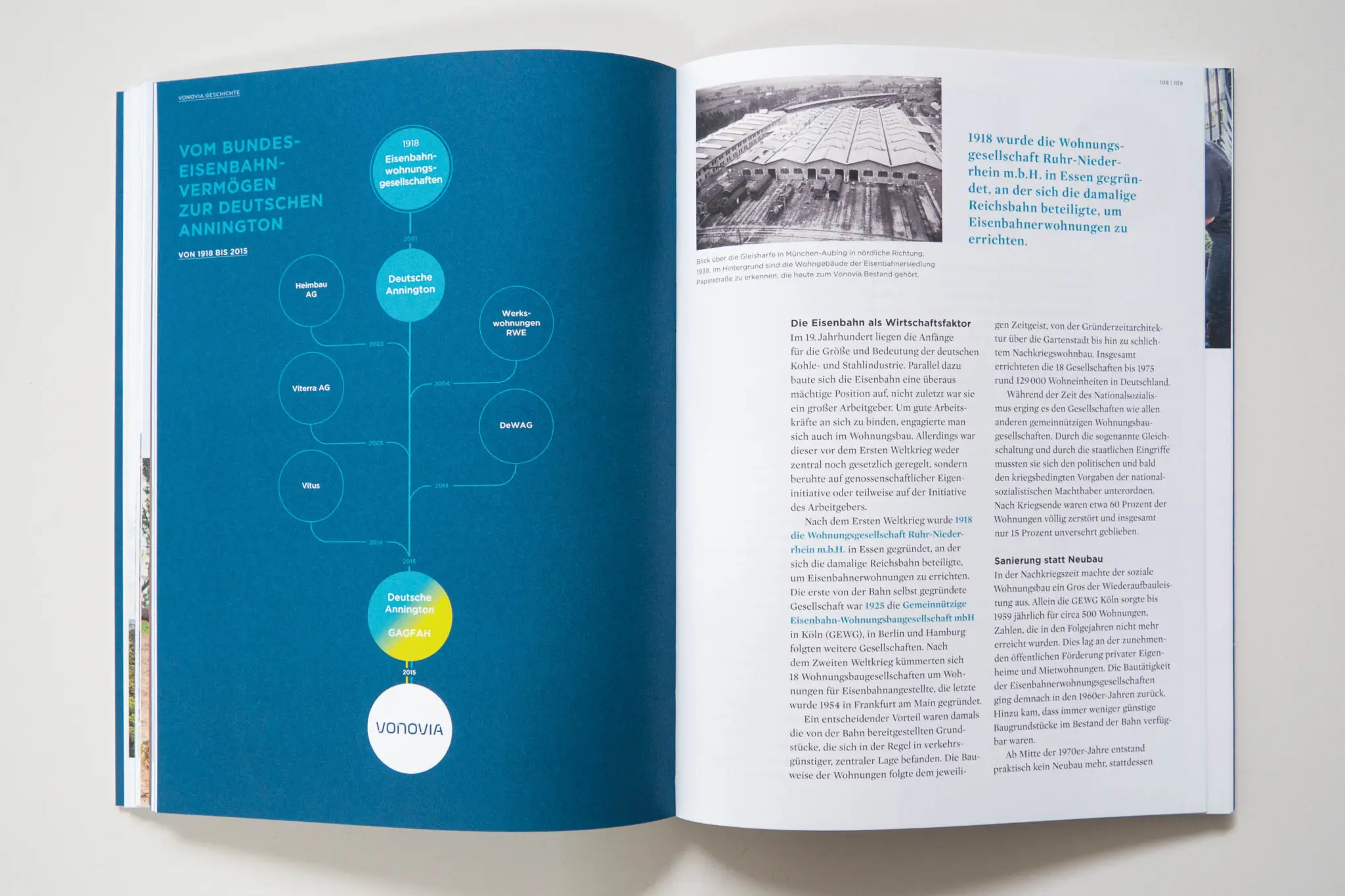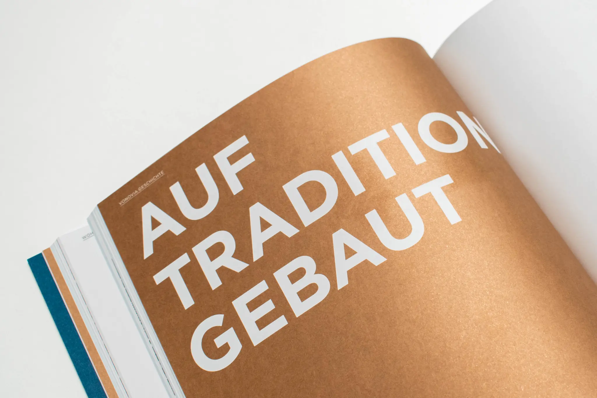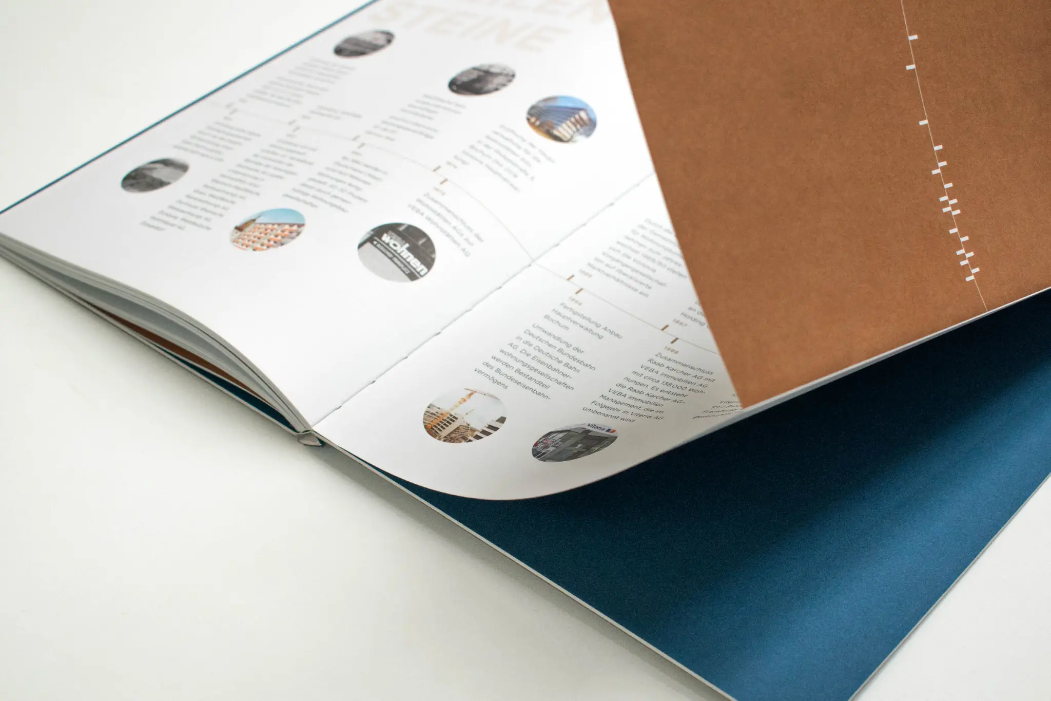 Anlässlich des Bezugs der neuen Unternehmenszentrale: Das Jubiläumsbuch zur 100-jährigen Unternehmensgeschichte, inklusiv Stanzung und ausklappbarer Chronik.
